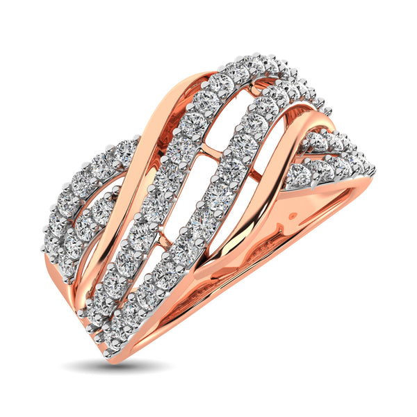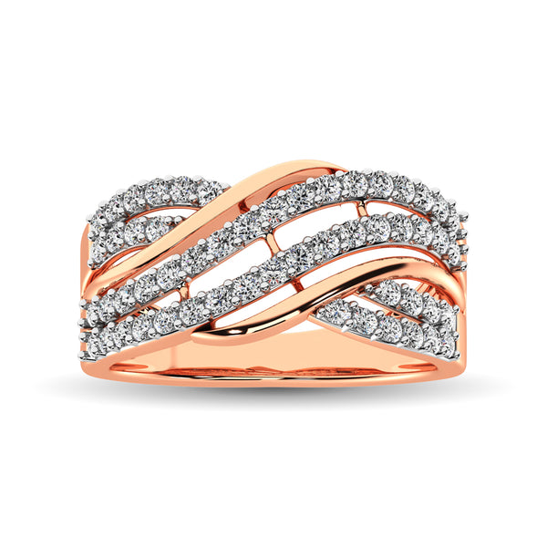 This glamorus ring is available in 10K Rose Gold. There are 54 round diamonds with a total carat weight of 1/6 ct set in a Prong setting.