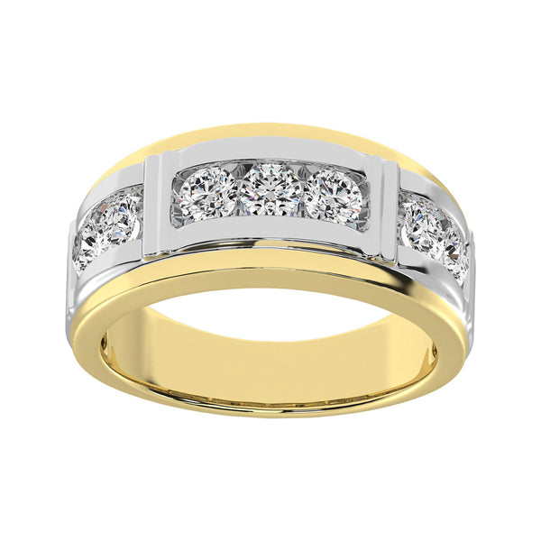 Promise to love him forever with this exquisite Weddin Ring band. Fashioned in sleek 10K yellow Gold and White Gold, this stylish band features 1/4 ct. t.w. of glittering diamonds in white gold channel setting. Polished to a brilliant shine, this handsome ring is one he'll be proud to wear.