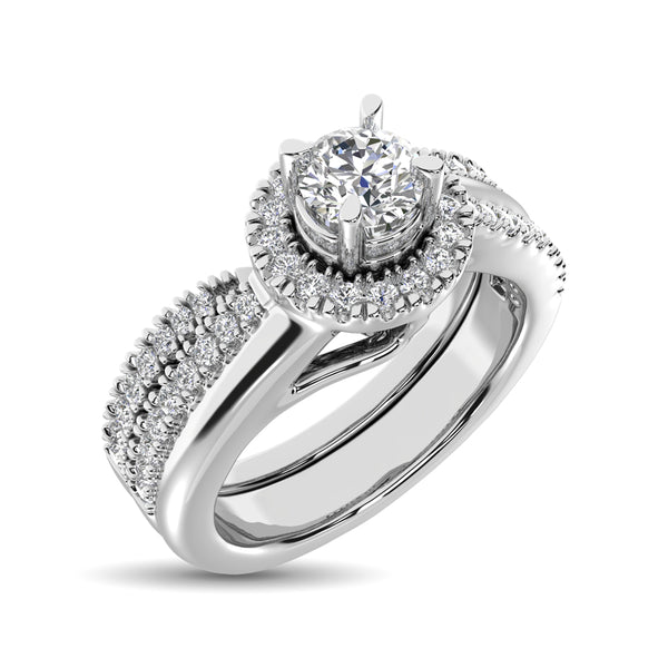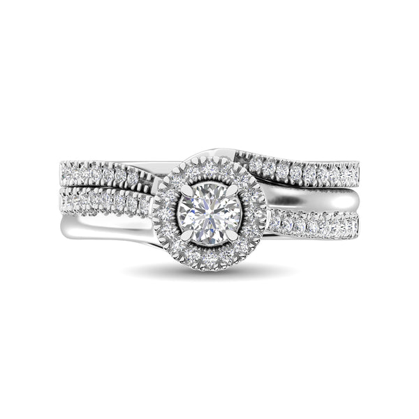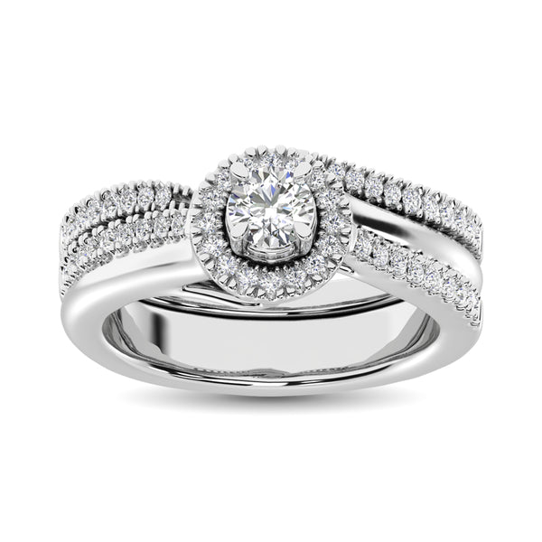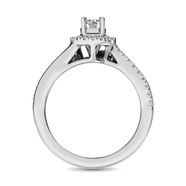 This eye-catching Bridal Ring is available in 10K White Gold. There is 1 round diamond with a total carat weight of 1/2 ct set in a micro prong setting.