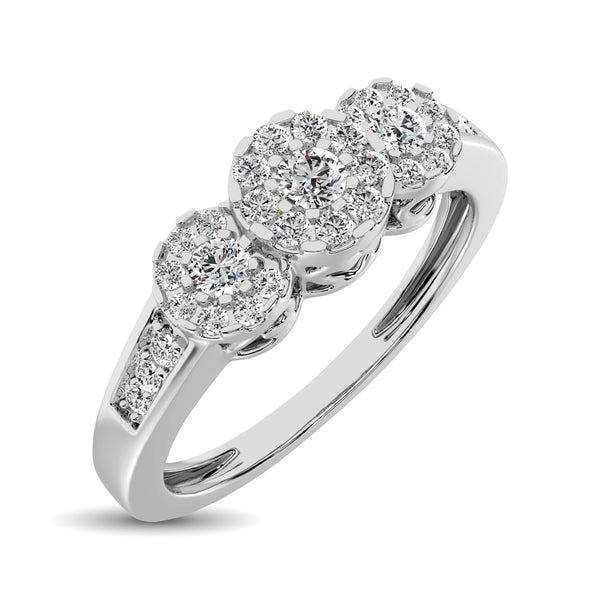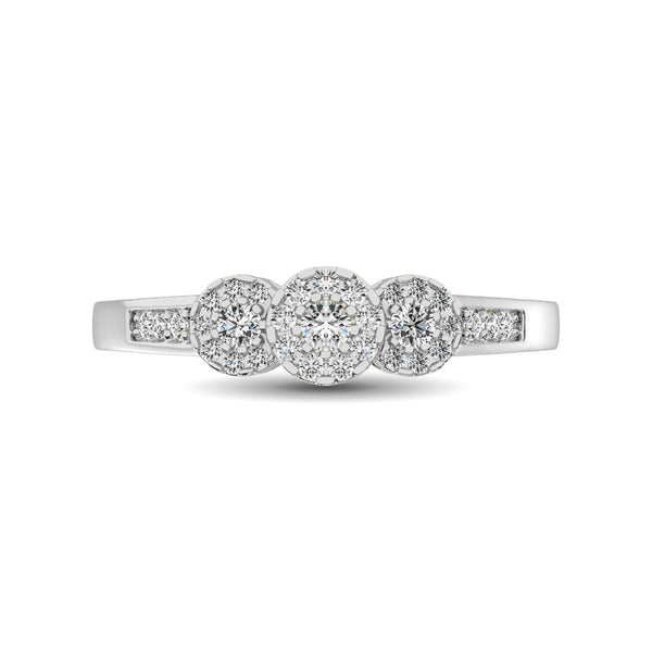 This beautiful ring is available in 10K White Gold. There are 32 round diamonds with a total carat weight of 1/3 ct set in a Prong setting.