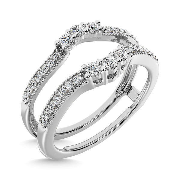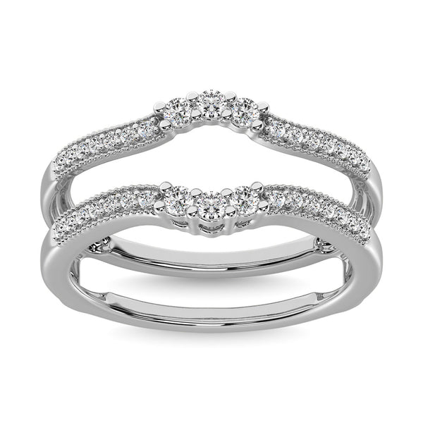 This Beautiful Guard Ring Is Available In 10K White Gold. There Are 34 Round Diamonds With A Total Carat Weight Of 1/3 Ct Set In A Prong Setting.