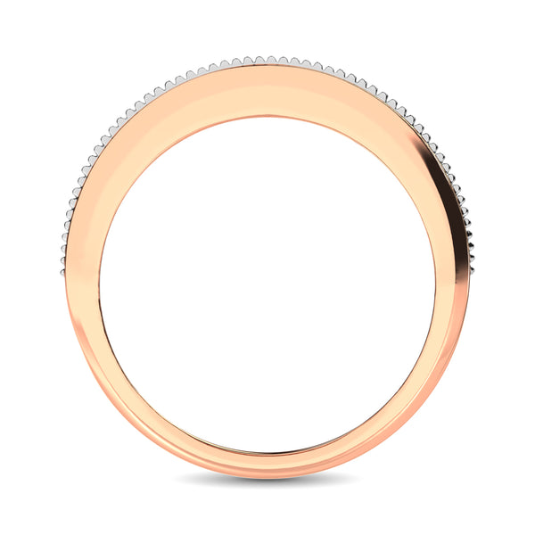 Surprise the love of your life with a 10K white gold diamond Weddin Ring band he will cherish and adore. Floating within channel setting, brilliant round diamonds totaling a stunning 1/4 ct. exude unique shine. For an artful final touch, the edging is textured with a rose gold milgrain finish.