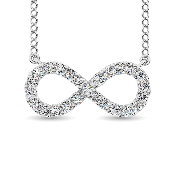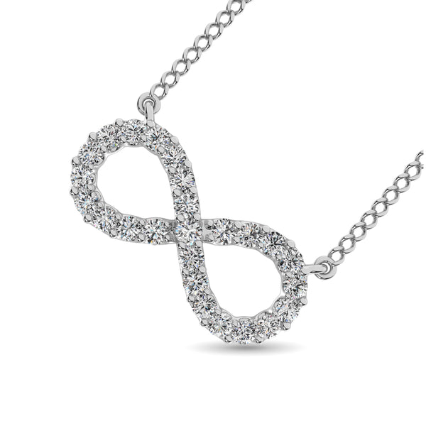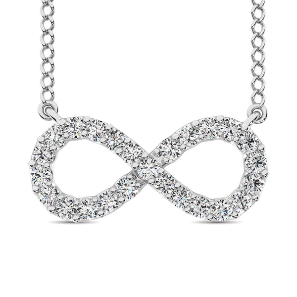 This stunning pendant is available in 10K White Gold. There are 25 round diamonds with a total carat weight of 1/2 ct set in a Prong setting.