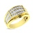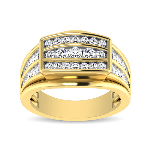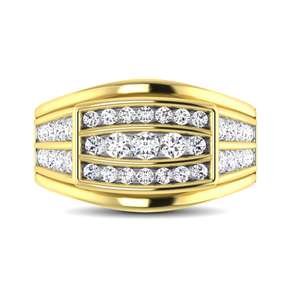 This glamorus ring is available in 10K Yellow Gold. There are 39 round diamonds with a total carat weight of 1 1/2 ct set in a Channel setting.