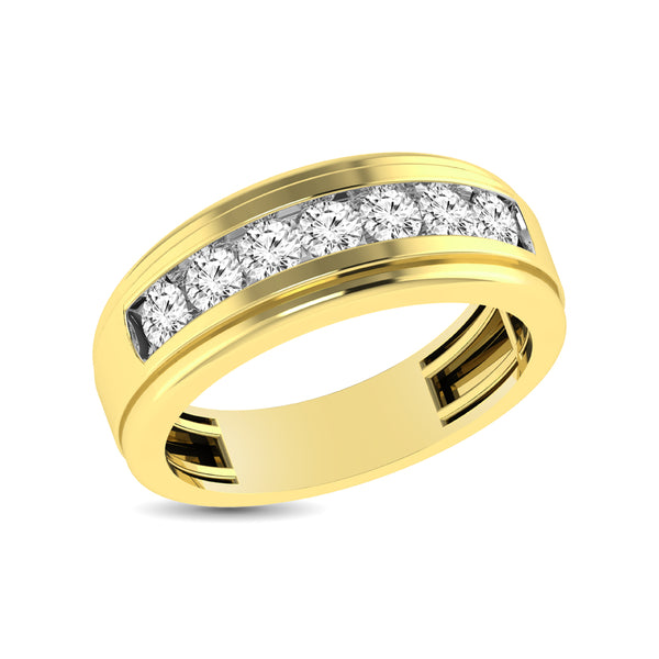 This stunning satin finish Men's Band set with 7 round shape diamonds of 1/2 ctw in channel setting. An exquisite symbol of your marriage commitment, this band is sure to please him.