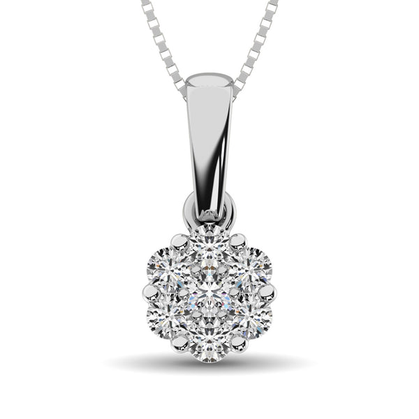 This Dazzling Flower Pendant Is Adorned With 1/2 Ct.Tw Diamonds. Crafted Of 14K White Gold And This Piece Will Add Elegance To Your Ensemble.