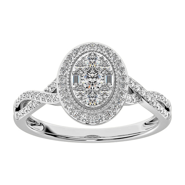14K White Gold 1/2 Ct.Tw. Diamond Round and Baguette Oval Shape Engagement Ring