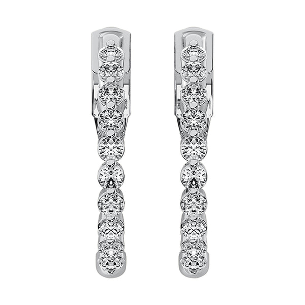 14K White Gold 1 5/8 Ct.Tw. Diamond Round Set Hoop Earrings