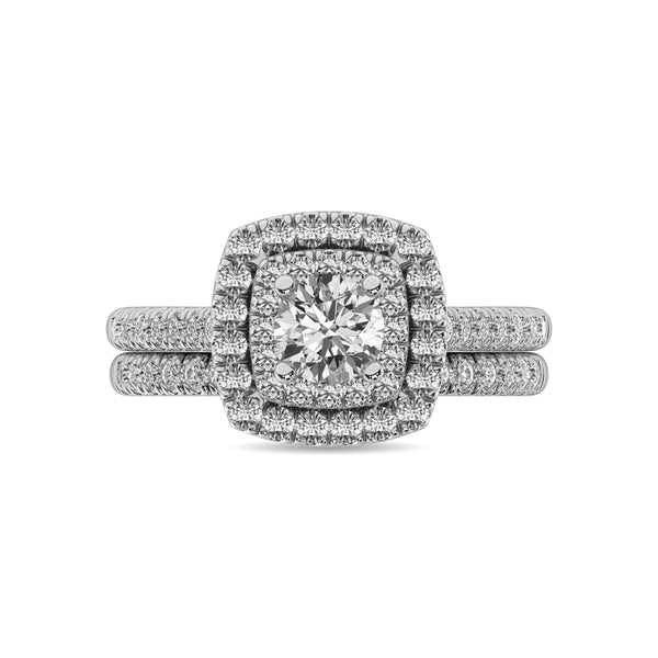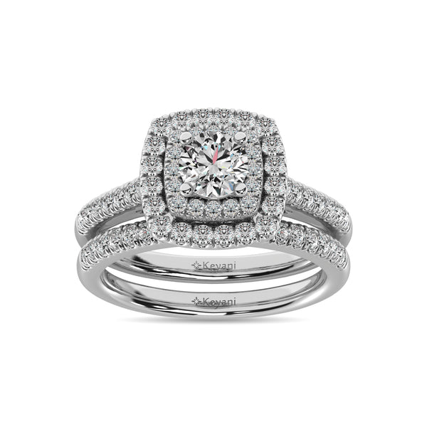 This beautiful Engagement Ring is available in 14K White Gold. There are 48 round diamonds with a total carat weight of 1 ct set in a micro prong setting.