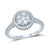 This stunning ring is available in 14K White Gold. There are 49 round diamonds with a total carat weight of 3/4ct set in a invisible prong / micro prong setting.