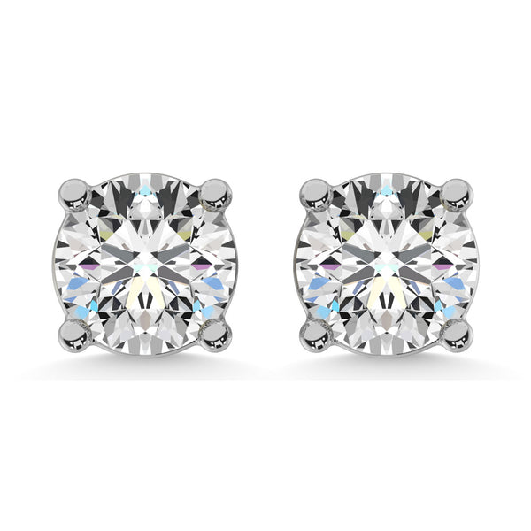 14K White gold 4 prong stud Earrings set with 2 brilliant cuts premium quality diamonds weighing 7/8 Ct.Tw.