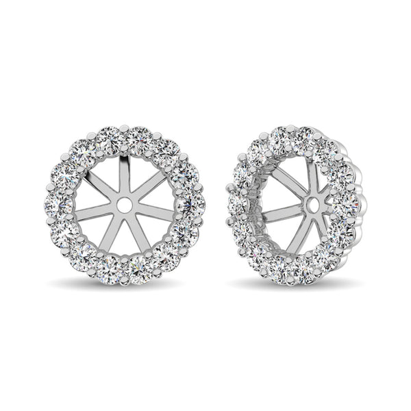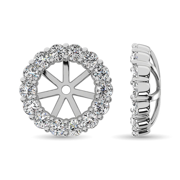 These beautiful earrings are available in 14K White Gold. There are 14 round diamonds with a total carat weight of 1/4 ct set in a Prong setting.