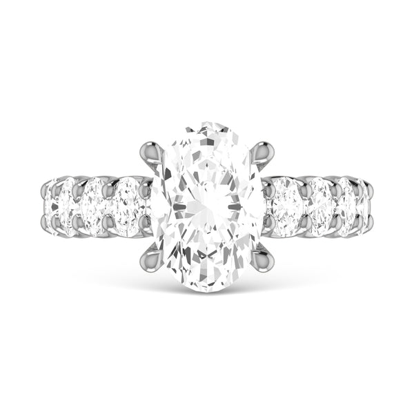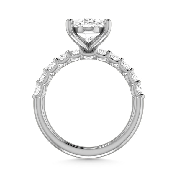 14K White Gold Diamond 1 Ct.Tw. Oval Shape Half way Engagement Ring (Center 2 ctw)