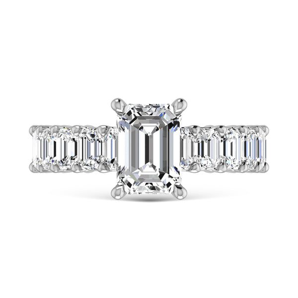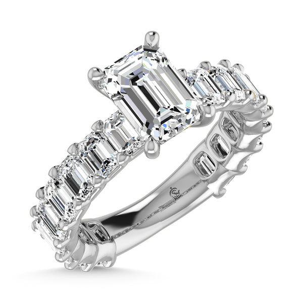 14K White Gold Diamond 3 5/8 Ct.Tw. Emerald Shape Three Forth Engagement Ring (Center 3 ctw)