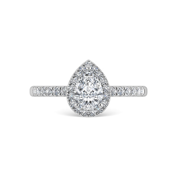 14K White Gold Lab Grown Diamond 1 3/4 Ct.Tw. Shank Pear Shape Halo Engagement Ring