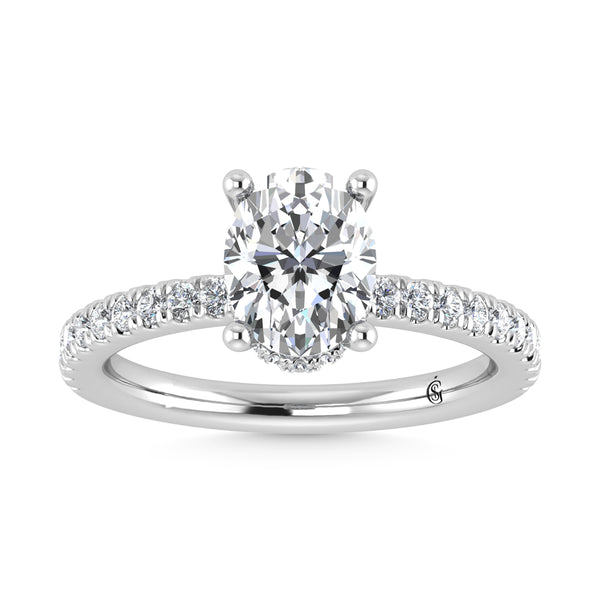 14K White Gold Lab Grown Diamond 3 1/2 Ct.Tw. Oval Shape Halo Engagement Ring (Center 3 ct)