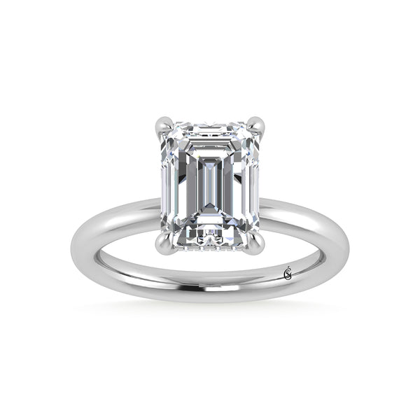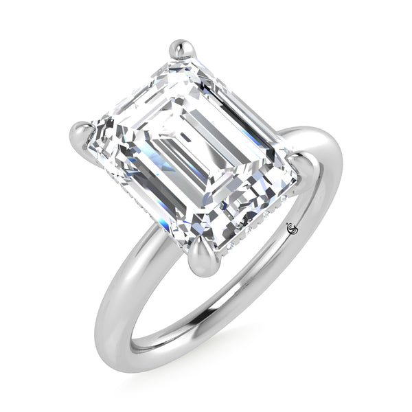 Hidden Halo14K White Gold Lab Grown Diamond 3 1/20 Ct.Tw. Emerald Shape Certified Engagement Ring (Center 3ct)