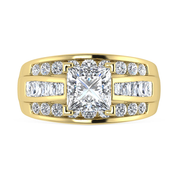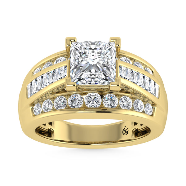 14K Yellow Gold Lab Grown Diamond 2 7/8 Ct.Tw. Princess Shape Engagement Ring (Center 2CT)