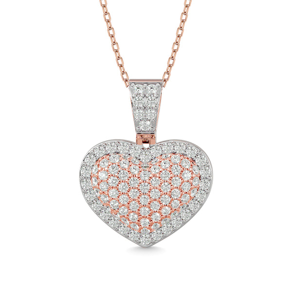Wow her with this beautiful heart pendant. Crafted in cool 10K Pink Gold, this dazzling design features a shimmering round cut 1 1/2 ct. t.w.diamonds. This pendant suspends along an 18.0-inch chain that secures with a spring-ring clasp.