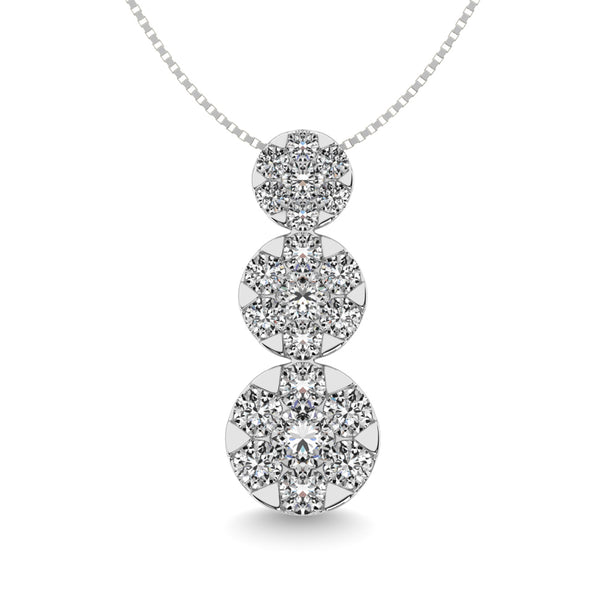 Diamond 1 1/2 ct tw Three Stone Flower Pendant in 14K White Gold