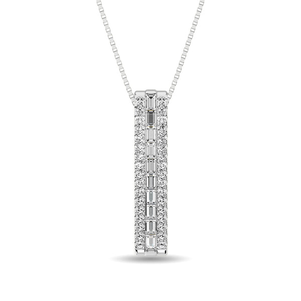 Diamond 1/4 Ct.Tw. Round and Baguette Fashion Pendant in 10K White Gold