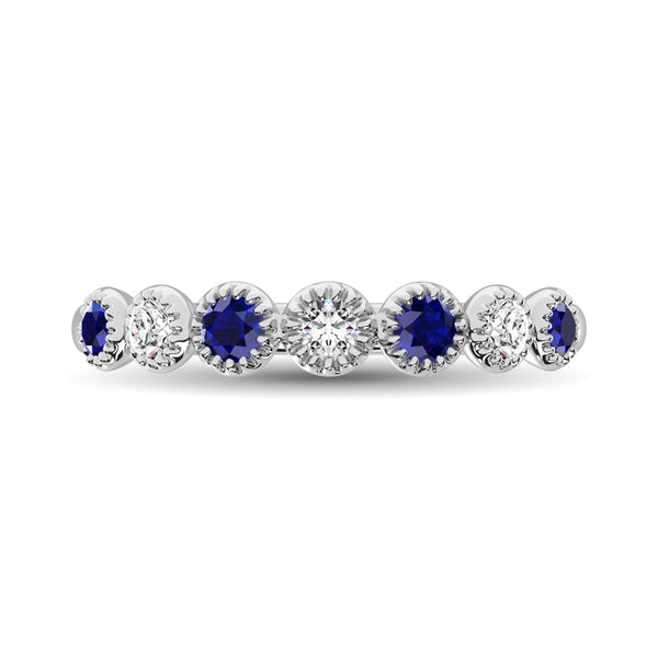 Diamond 1/5 Ct.Tw. And Blue Sapphire Stack Band in 14K White Gold ( 3 Diamond and 4 Blue Sapphire )