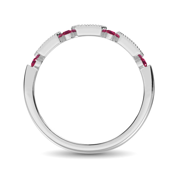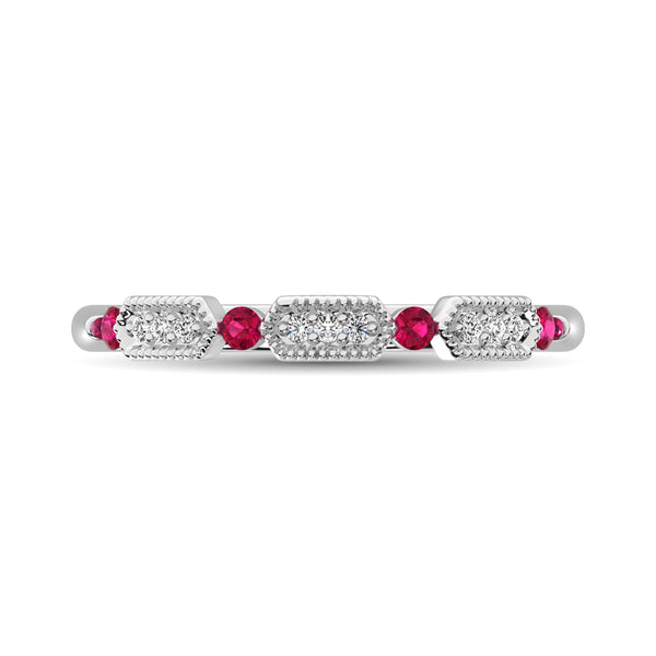Diamond 1/5 Ct.Tw. And Ruby Stack Band in 14K White Gold ( 9 Diamond and 4 Ruby )