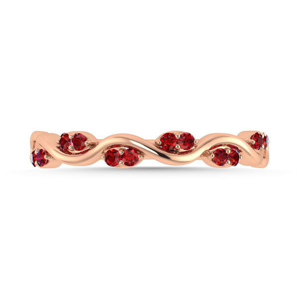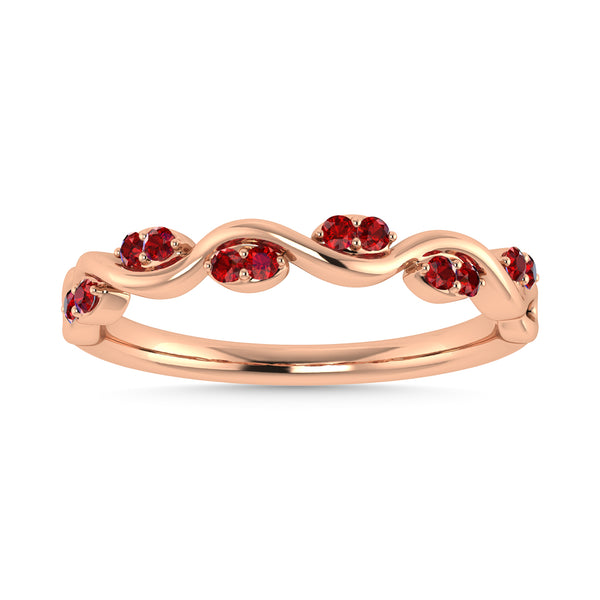 Diamond 1/6 Ct.Tw. And Ruby Wedding Band in 14K Rose Gold