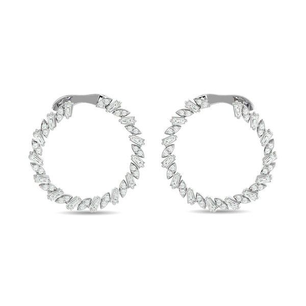 Diamond 3/4 Ct.Tw. Straight Baguette Hoop Earrings in 14K White Gold