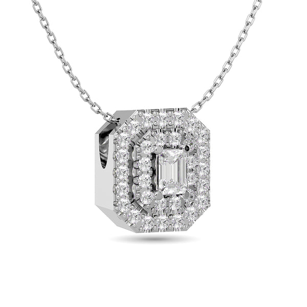 Diamond Emerald Cut Double Halo Pendant 3/8 ct tw in 14K White Gold (1/6ct tw Centre)