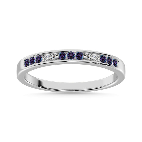 Synthetic Alexedrite and Alternate Diamond 1/4 Ct.Tw. Ladies Machine Band in 14K White Gold
